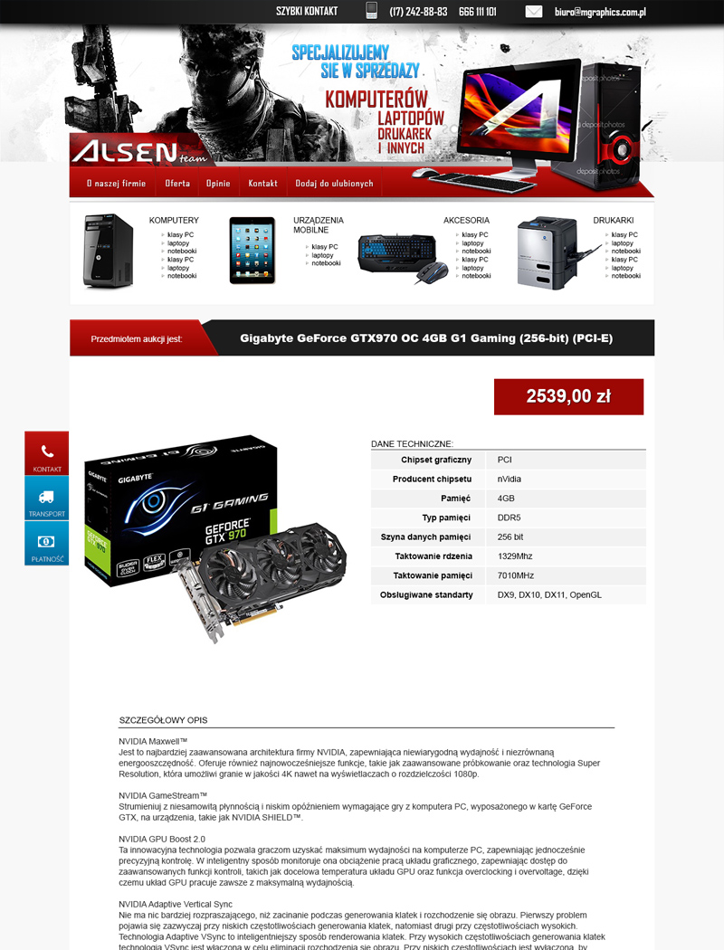 Realizacja szablonu allegro dla ALSEN-Team która jest profesjonalną organizacją esportową.