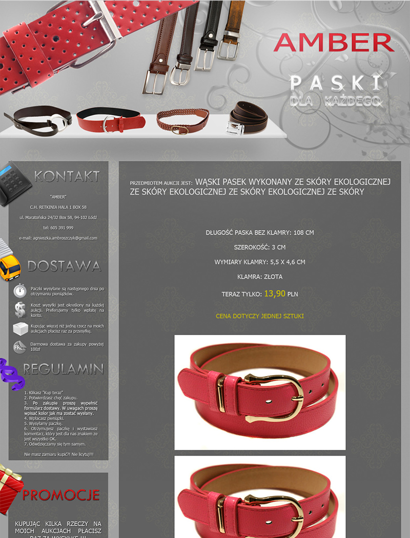 Amber to kolejny użytkownik na allegro specjalizujący się w sprzedaży pasków, biżuterii sztucznej i innych akcesoriów osobistych.