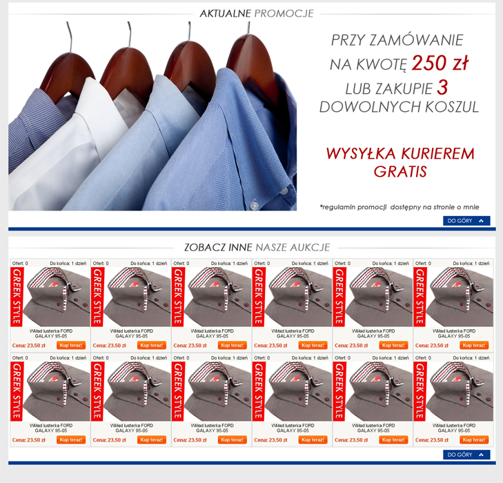 Greek Style to firma oferująca swoje produkty na portalu aukcyjnym. Produkty oferowane przez firmę to głównie wysokiej jakości eleganckie koszule męskie.