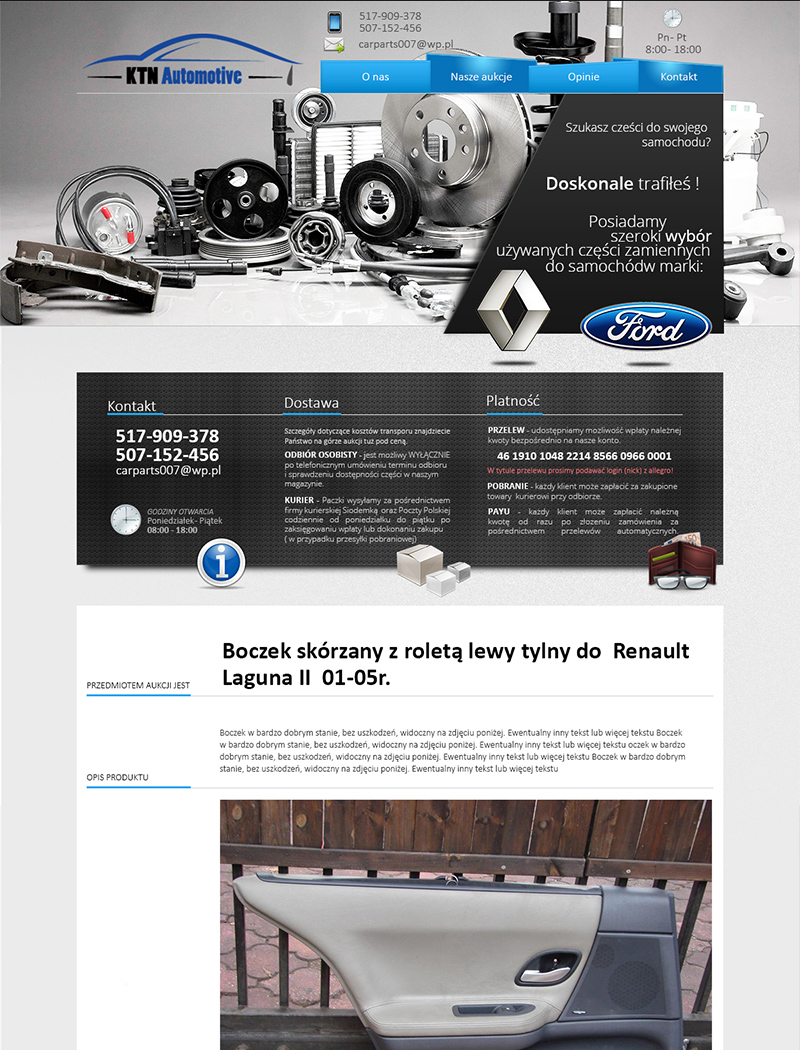KTN Automotive to profesjonalna firma specjalizująca się w sprzedaży głównie używanych oraz nowych części do samochodów marki renault oraz ford, ale nie tylko.