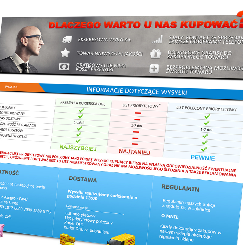 Realizacja szablonu allegro dla użytkownika oferującego usługi w zakresie pozycjonowania stron internetowych.