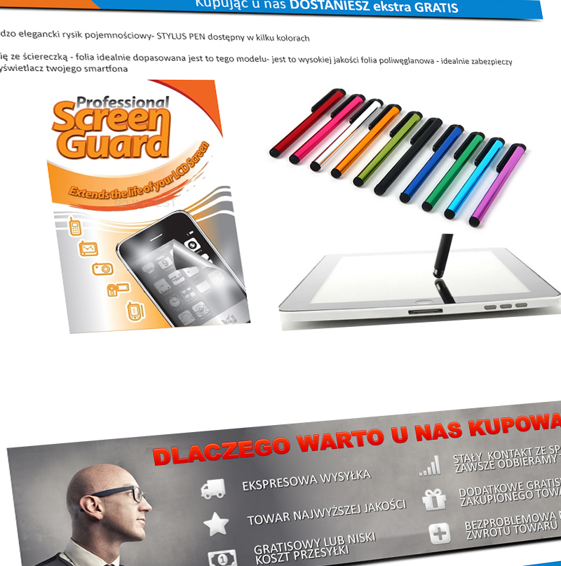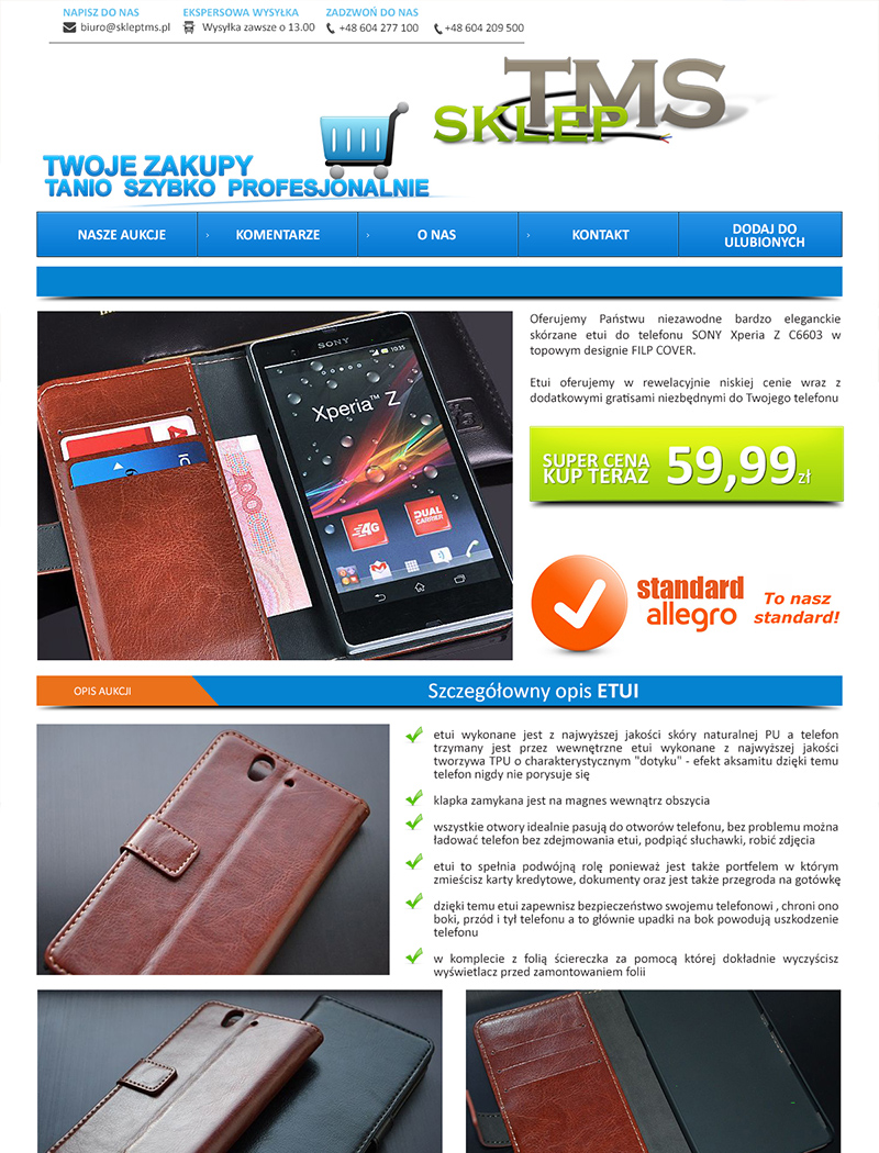 Realizacja szablonu dla użytkownika alegro oferującego akcesoria GSM takie jak etui do telefonów i inne.