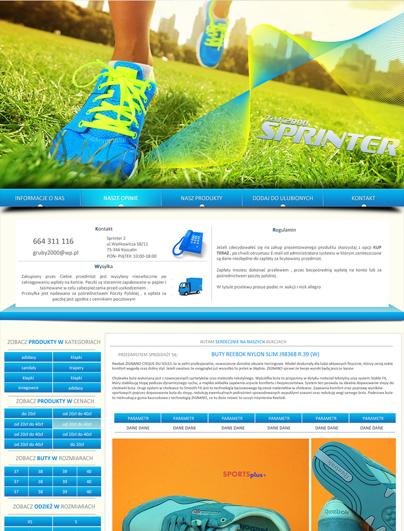 Sprinter2000 użytkownik oferujący sportowe obuwie w atrakcyjnych cenach. Ofertę stanowią nowe obuwie, głównie z ubiegłych kolekcji, ale i również z nowych.